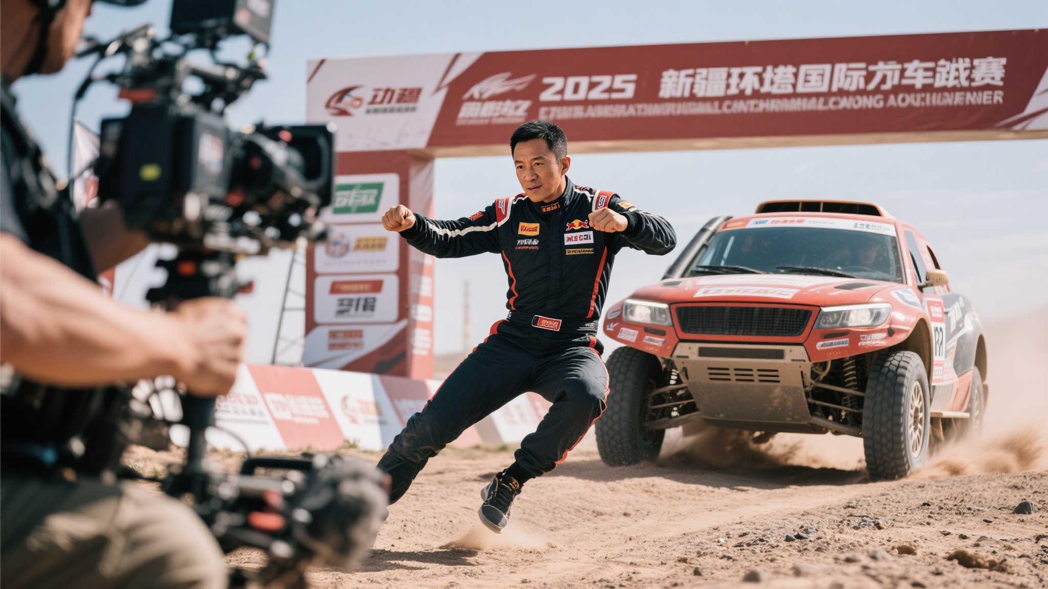 吴京化身赛车手,2025新疆环塔国际拉力赛激情开战!
